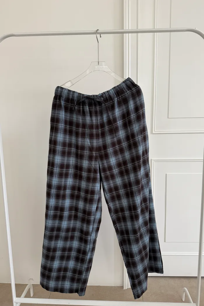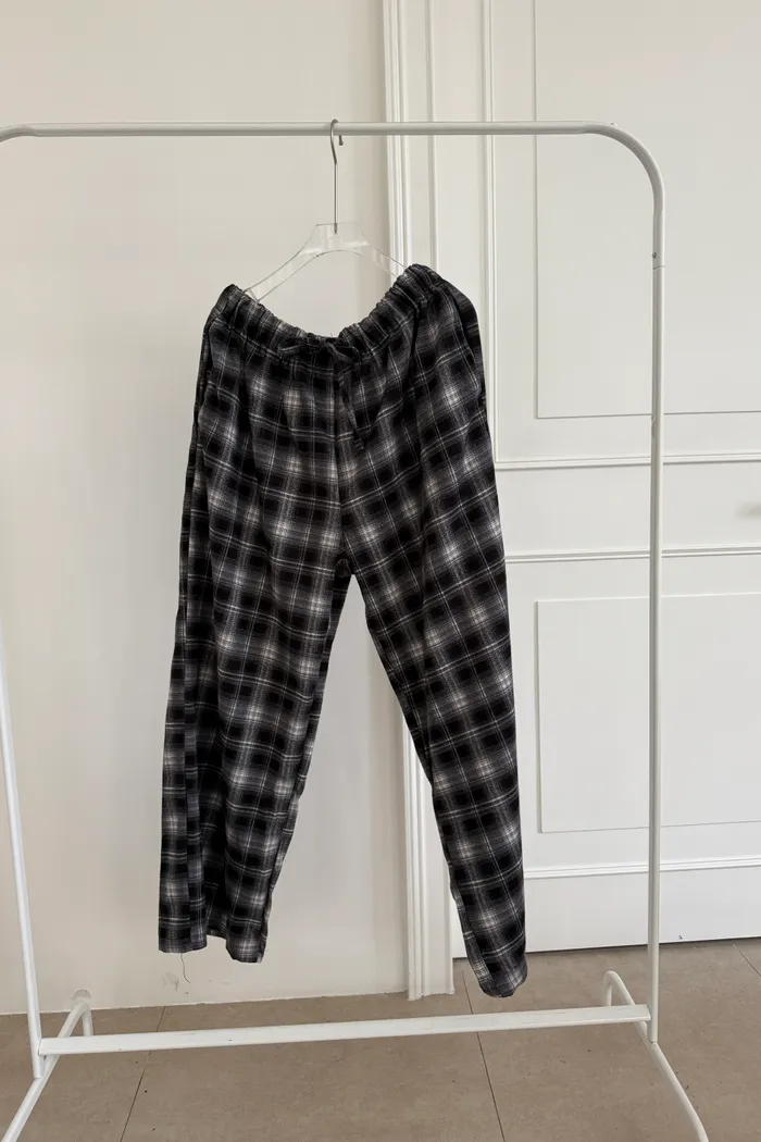 格紋絨感長褲