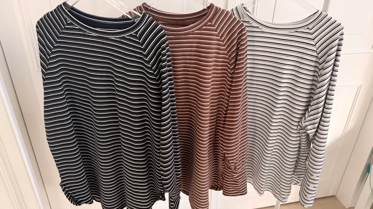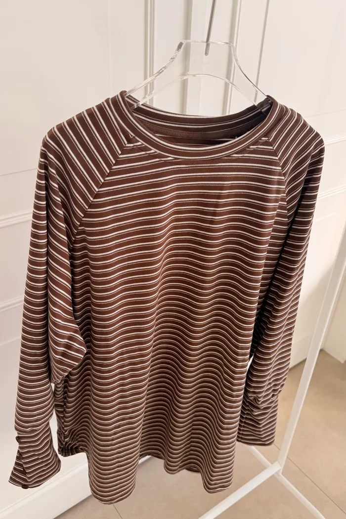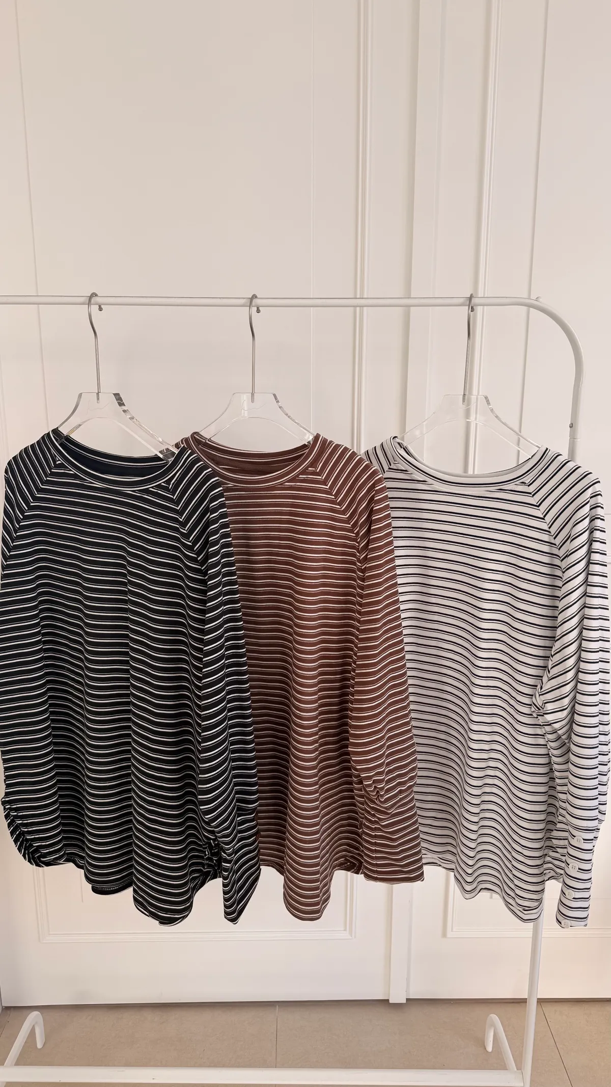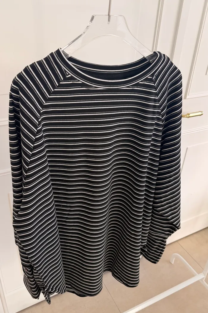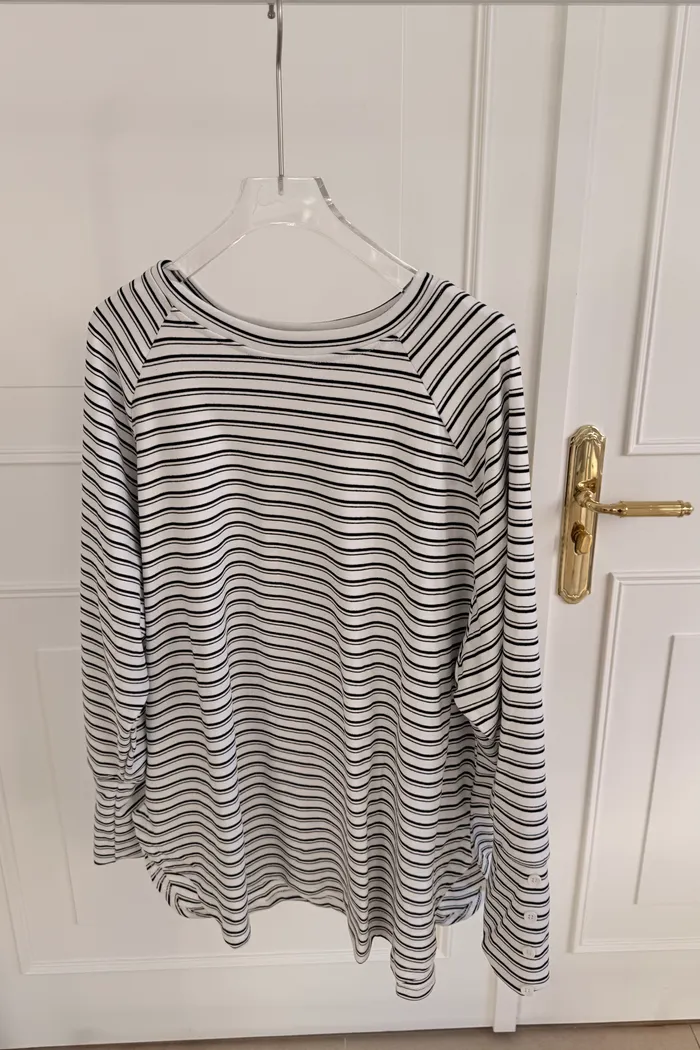 手袖排釦橫條上衣