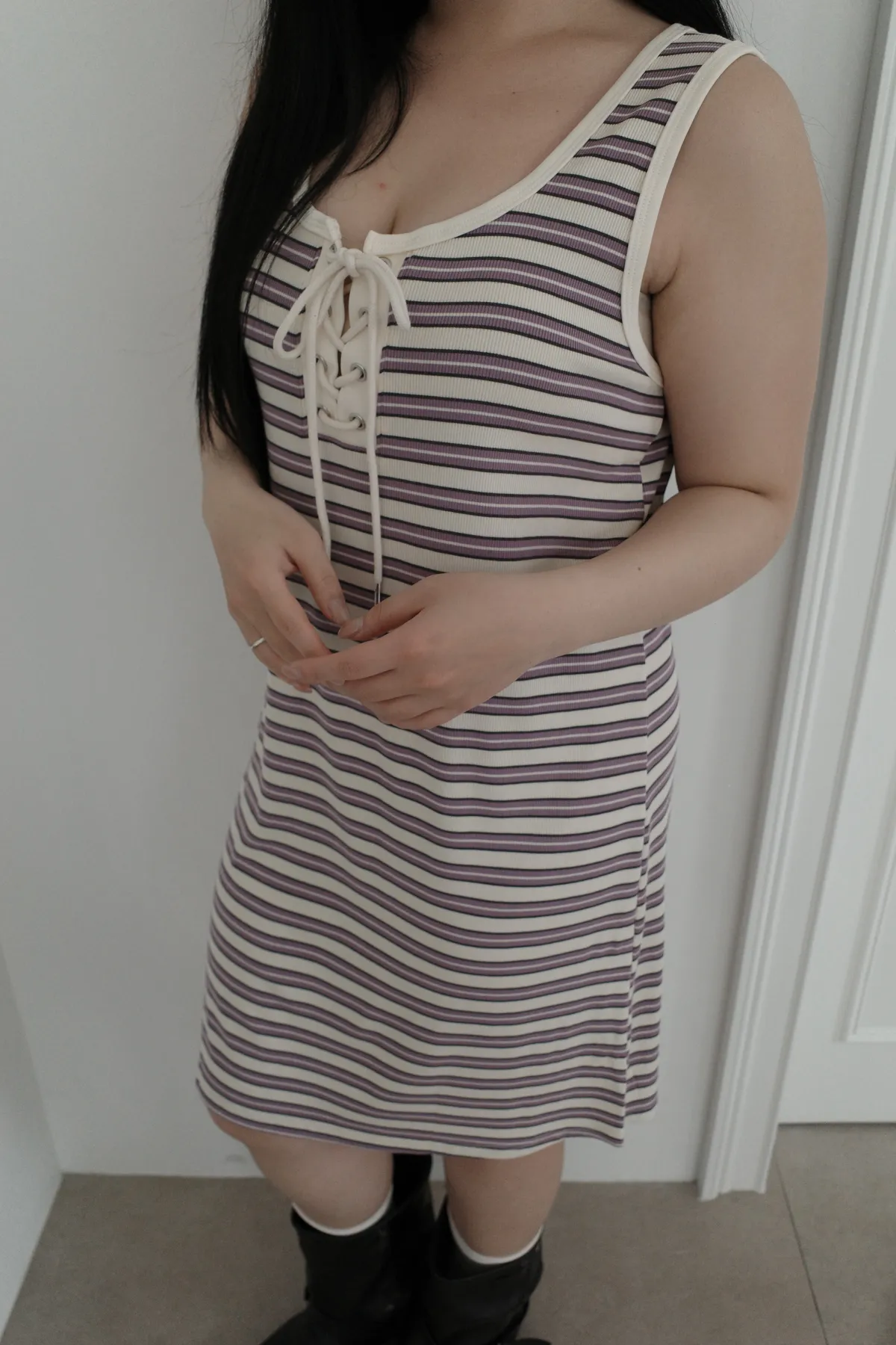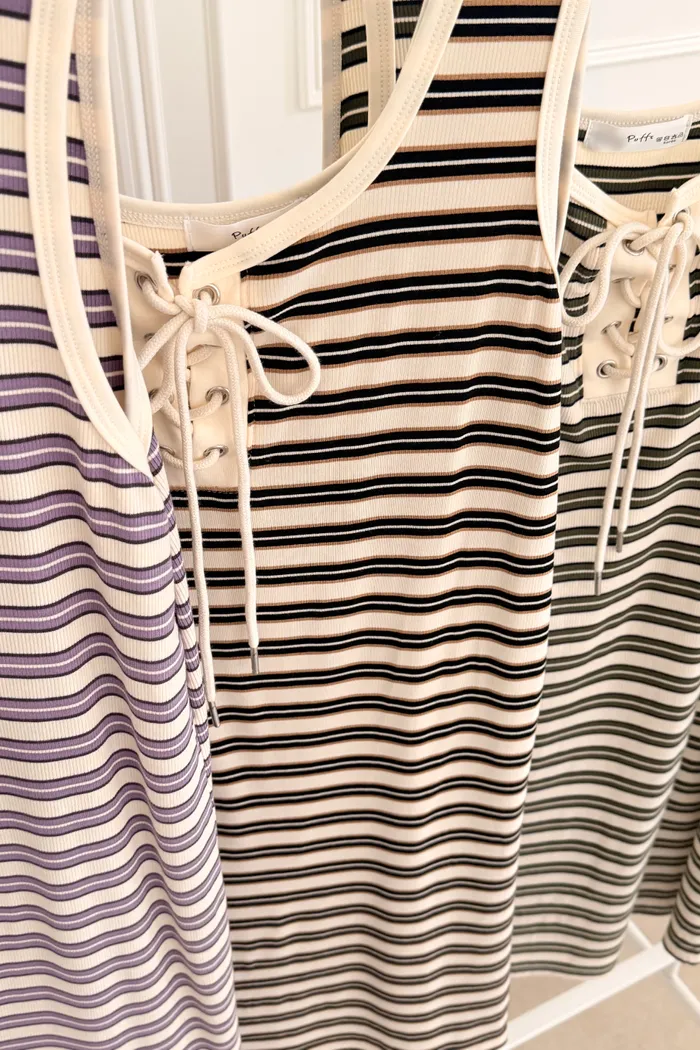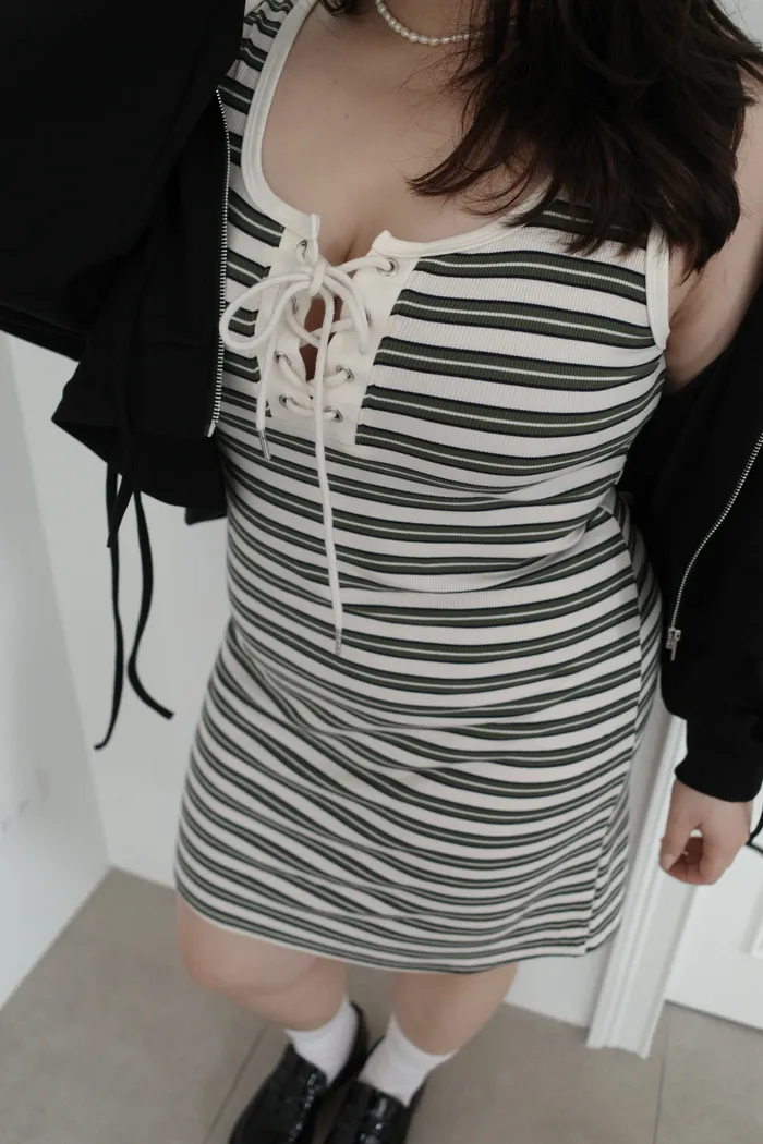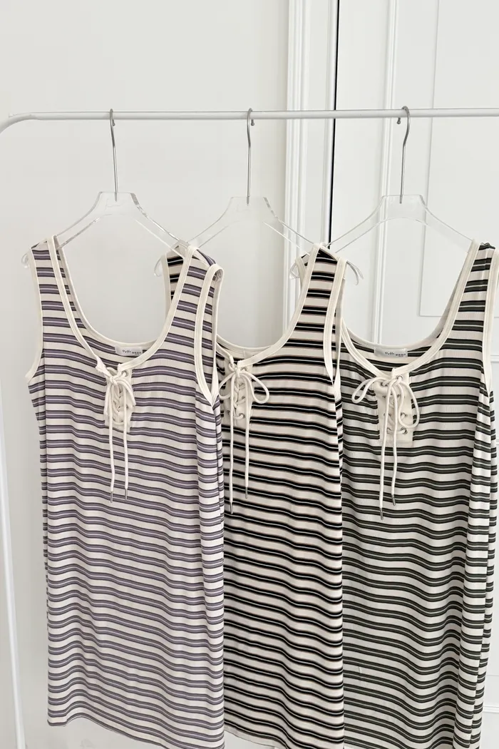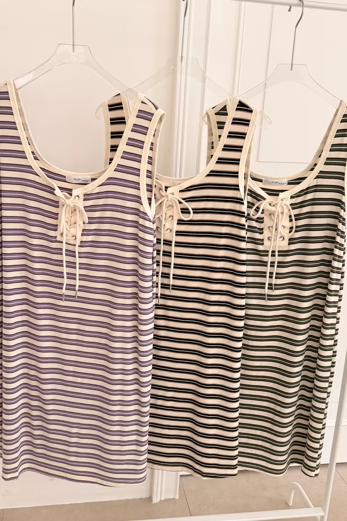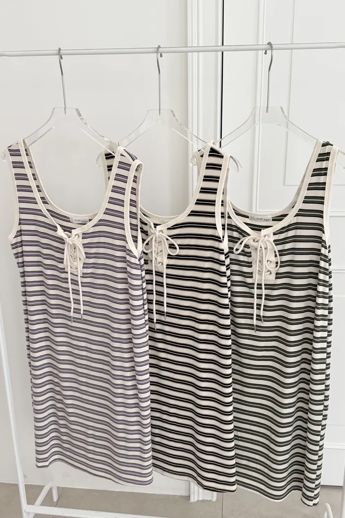 三月08 cute色系 橫條背心洋裝 (3colors)