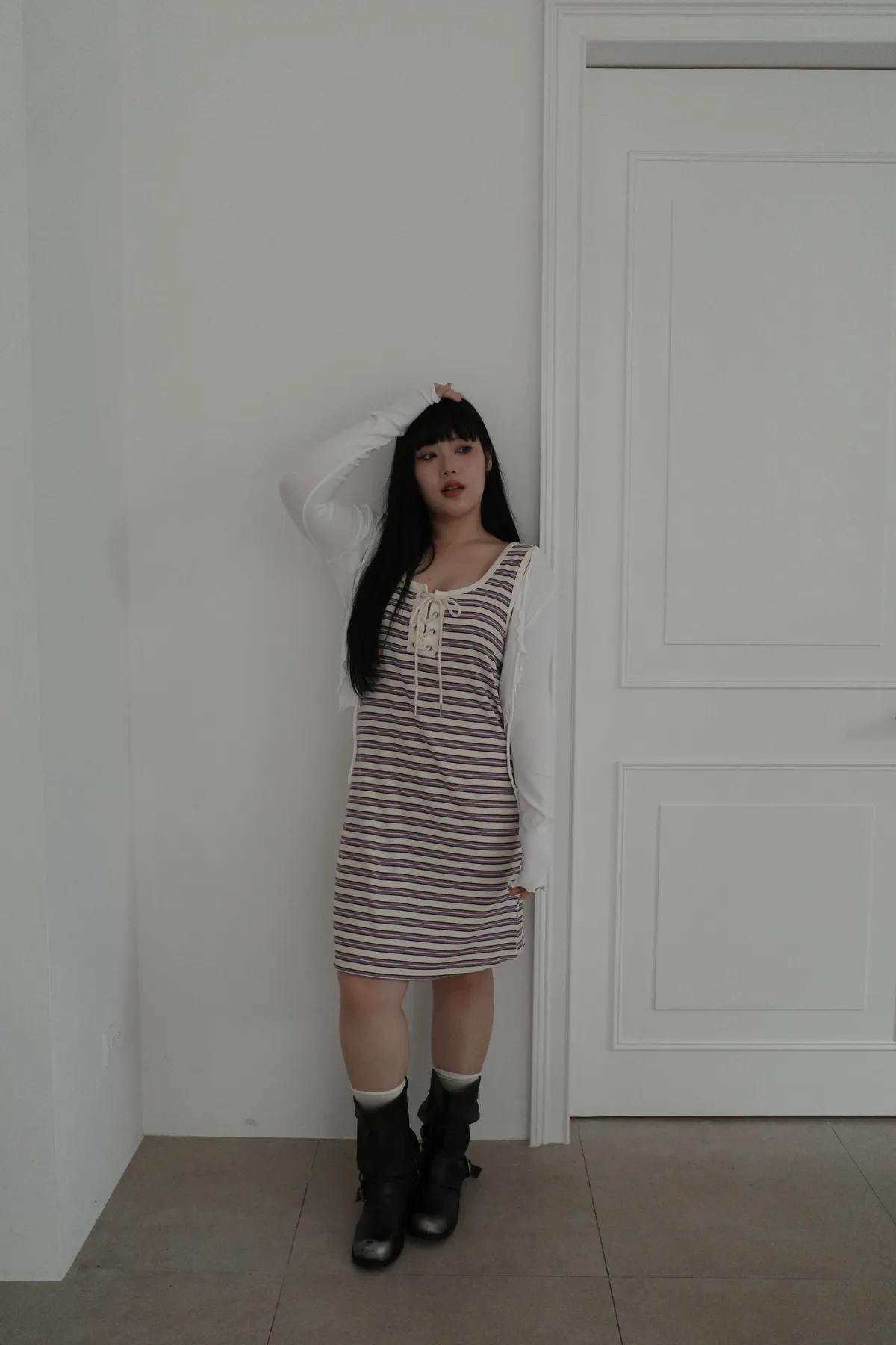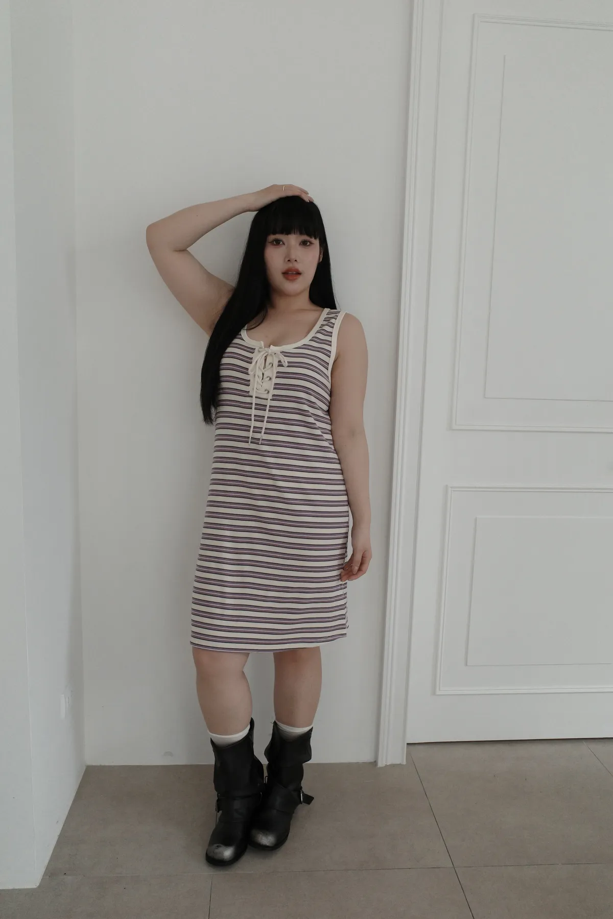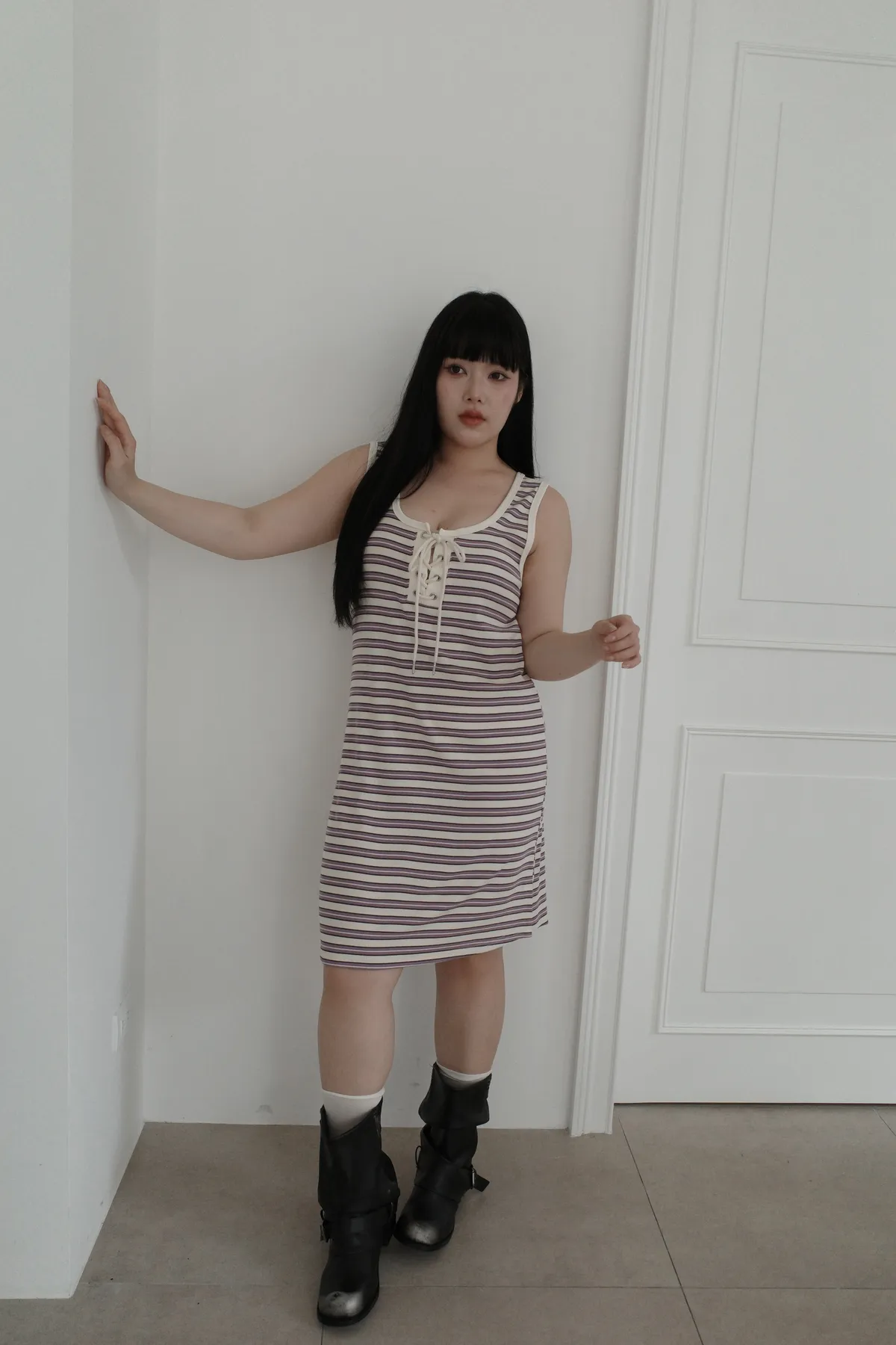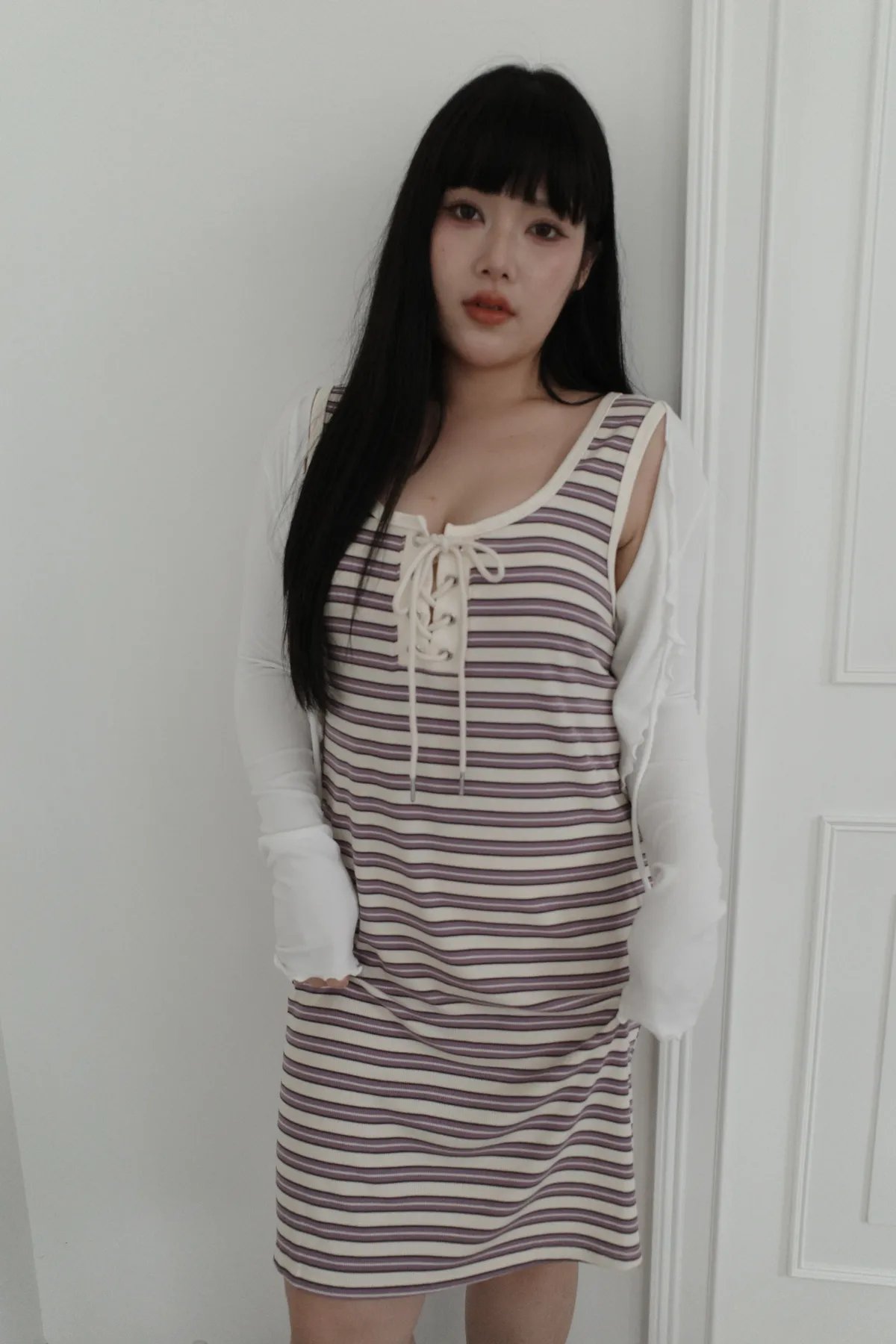 三月08 cute色系 橫條背心洋裝 (3colors)