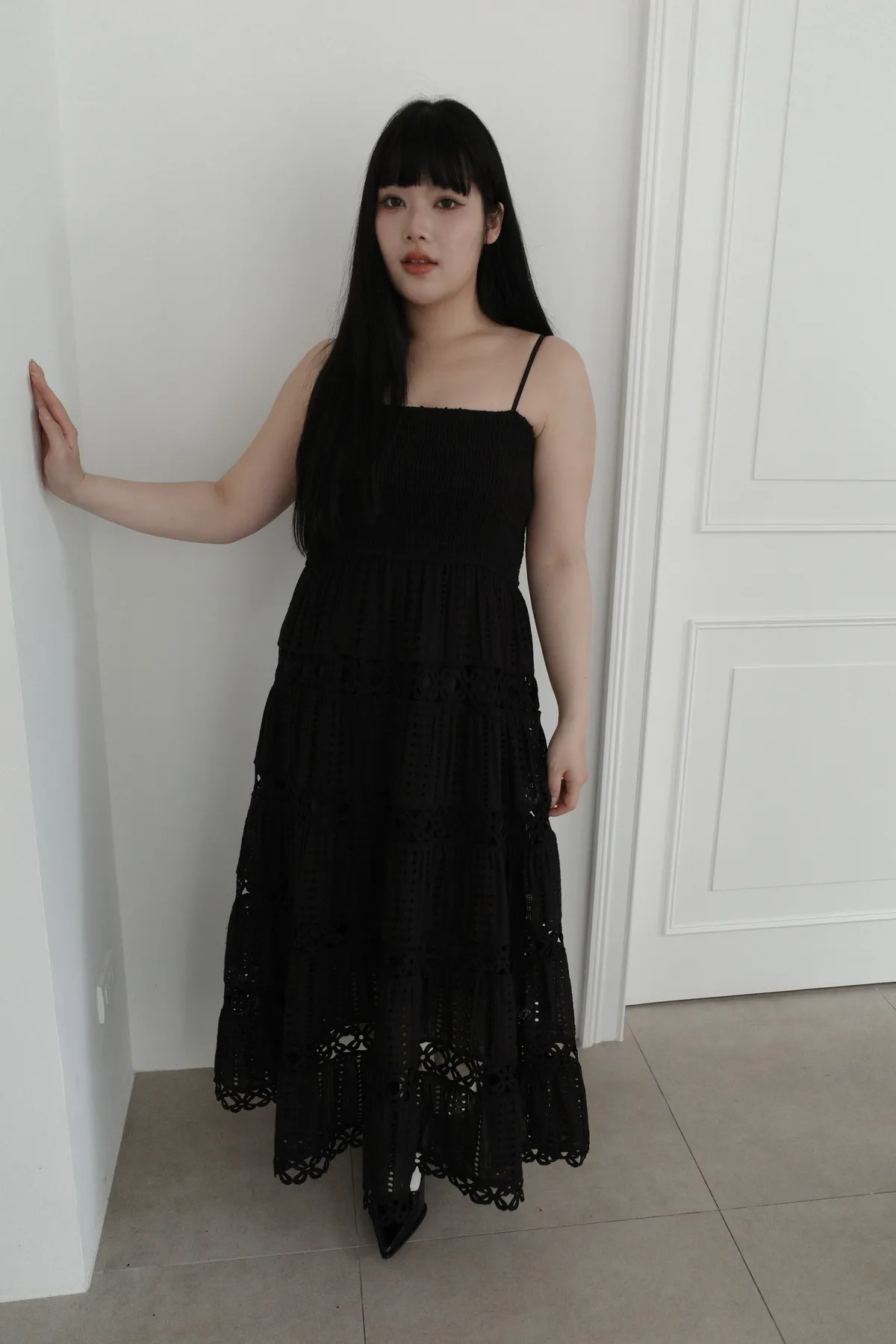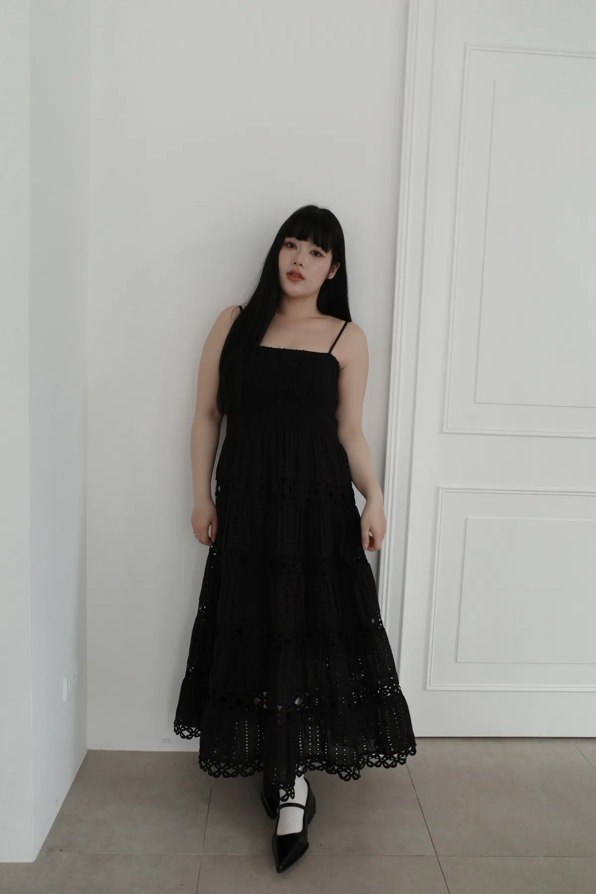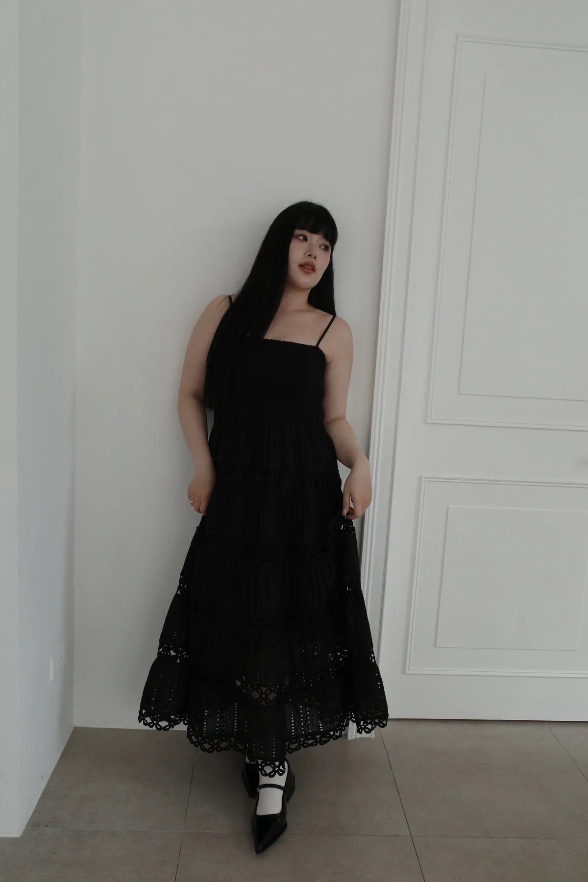 三月09 立體感蕾絲細肩洋裝 (2colors)