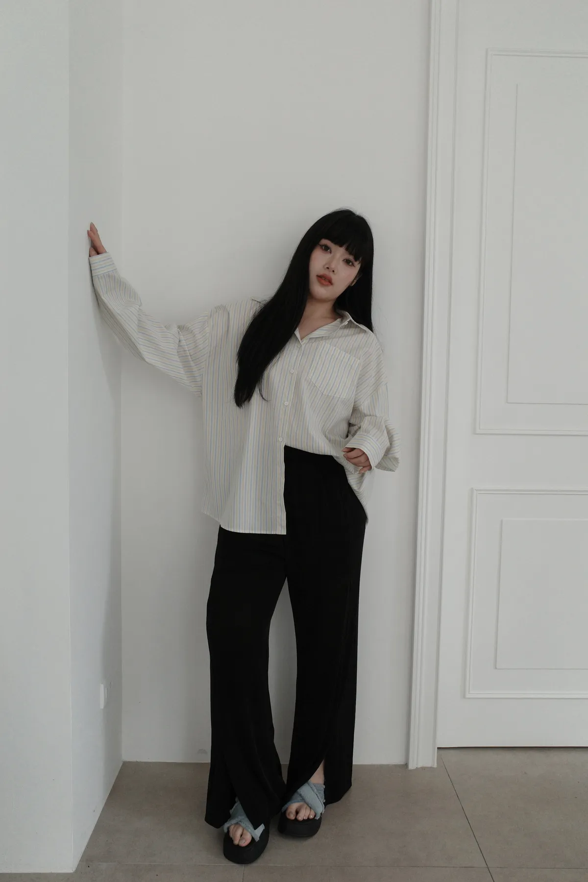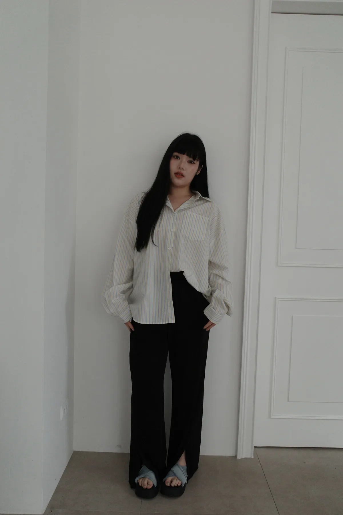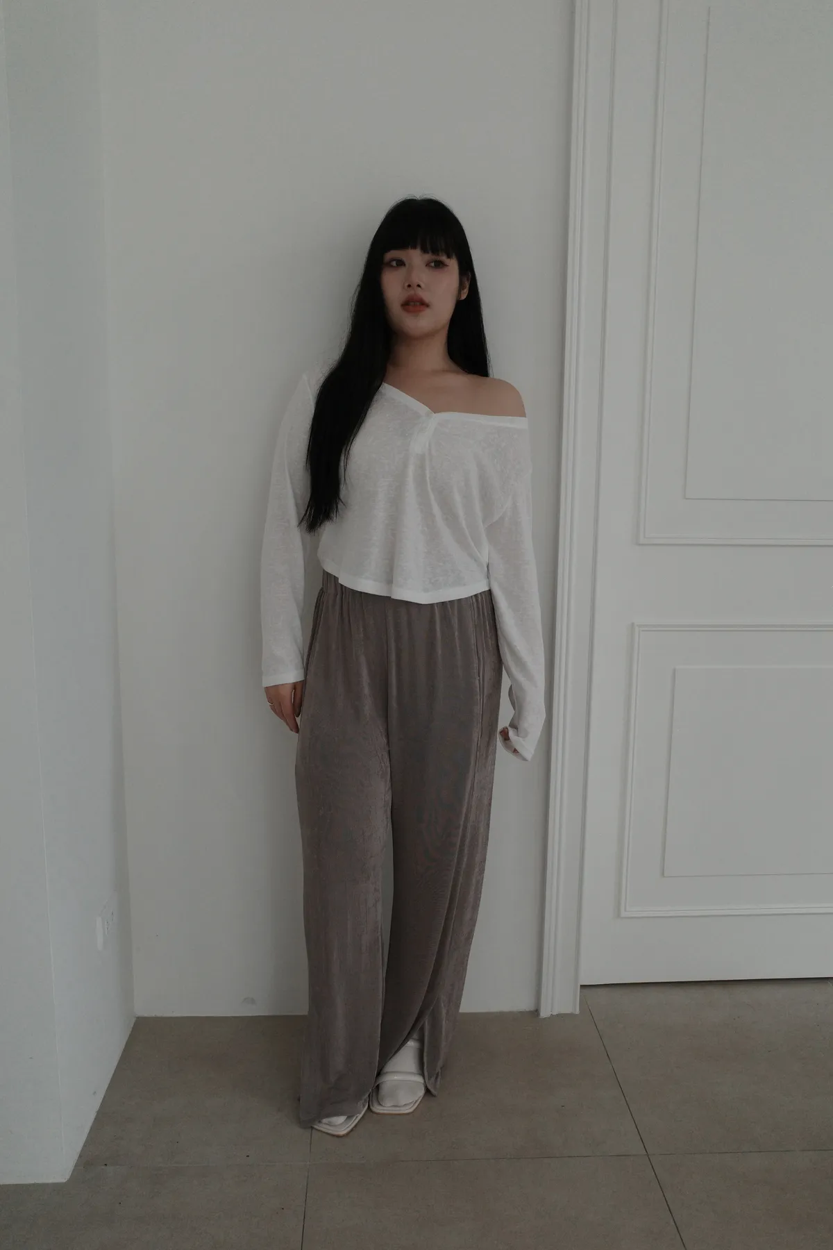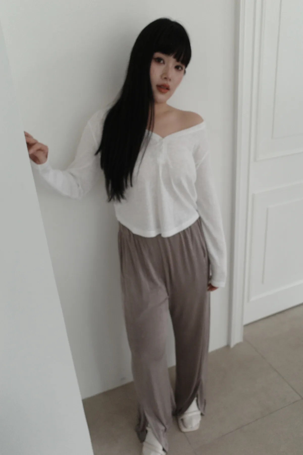 三月15 粼粼波光 漂亮的前開衩軟軟褲 (2colors)