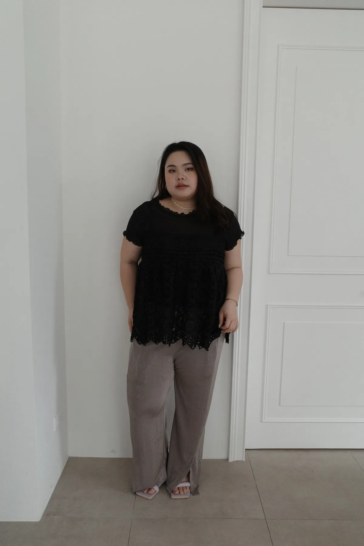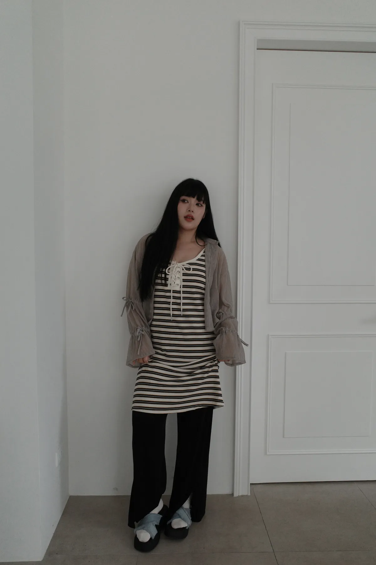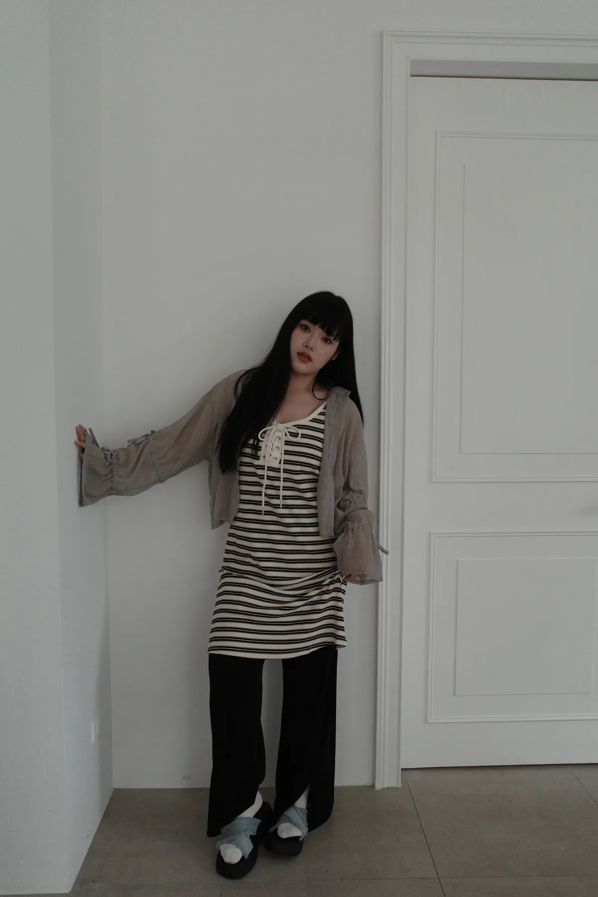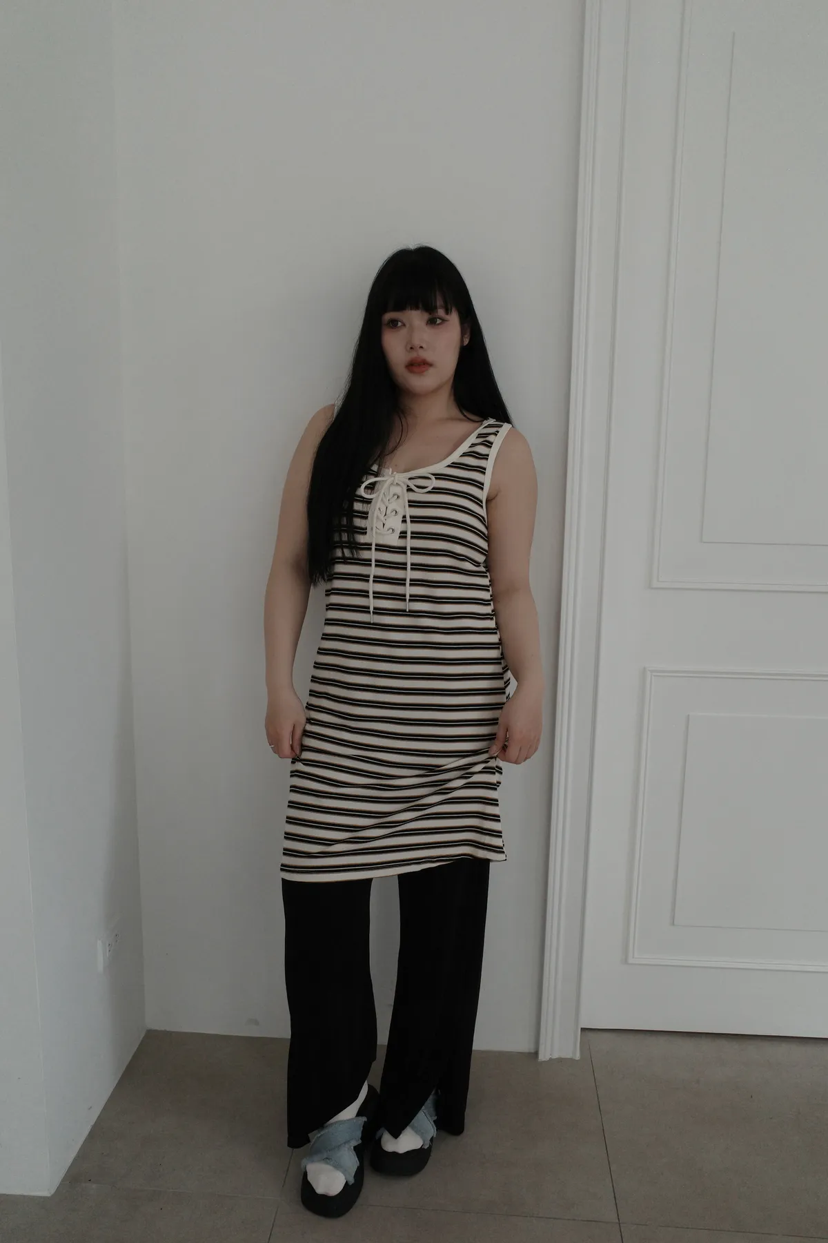 三月15 粼粼波光 漂亮的前開衩軟軟褲 (2colors)