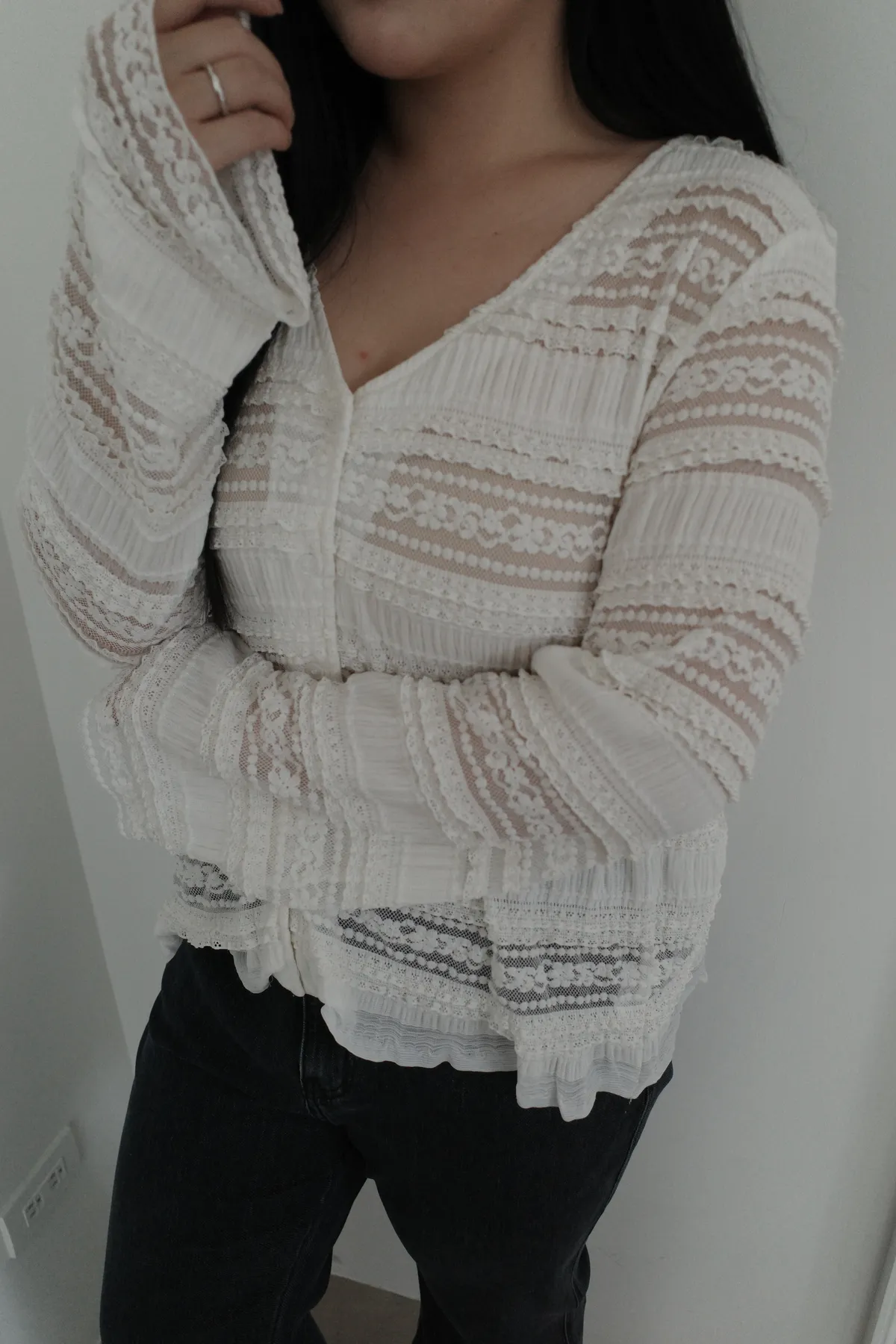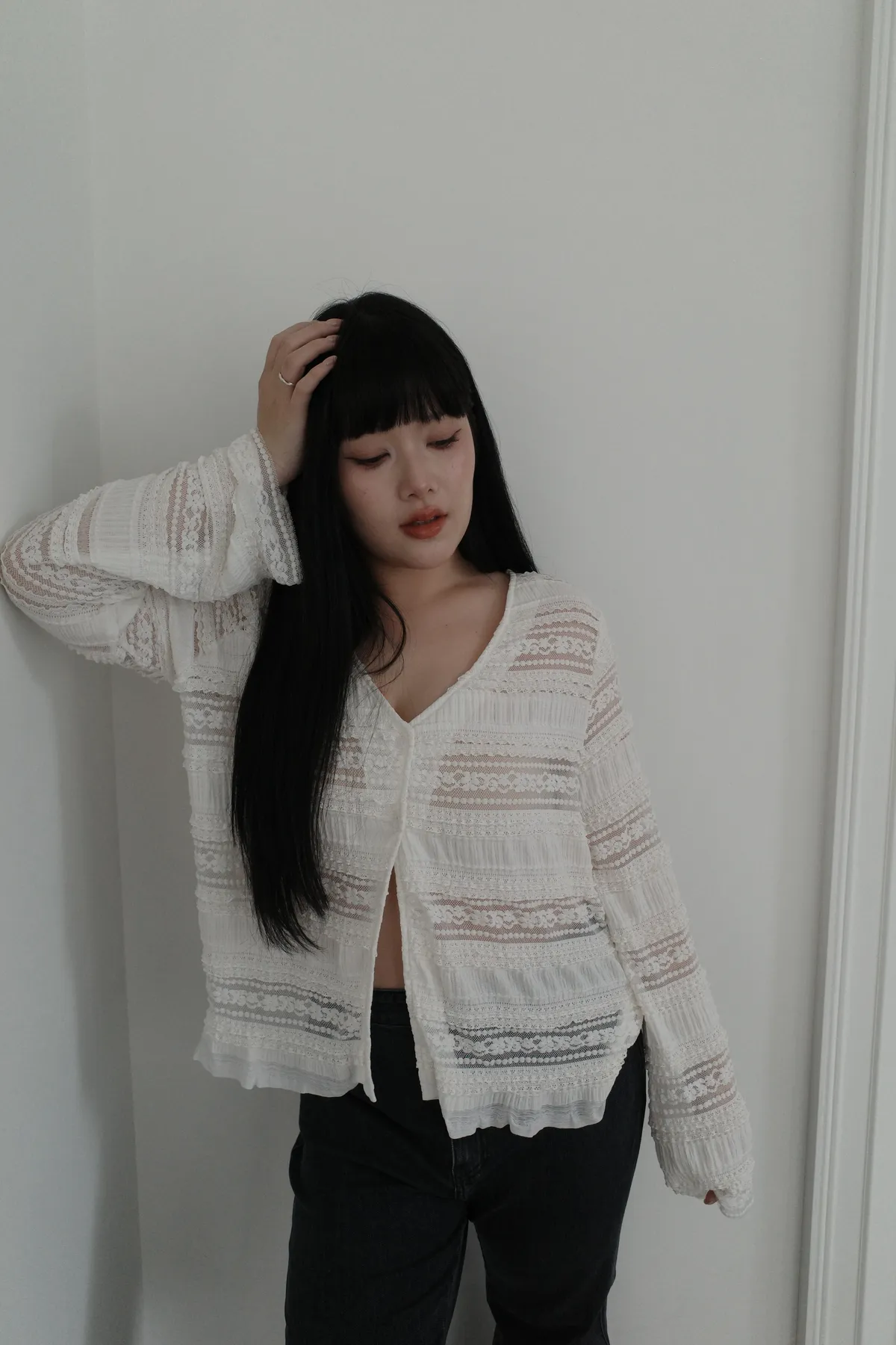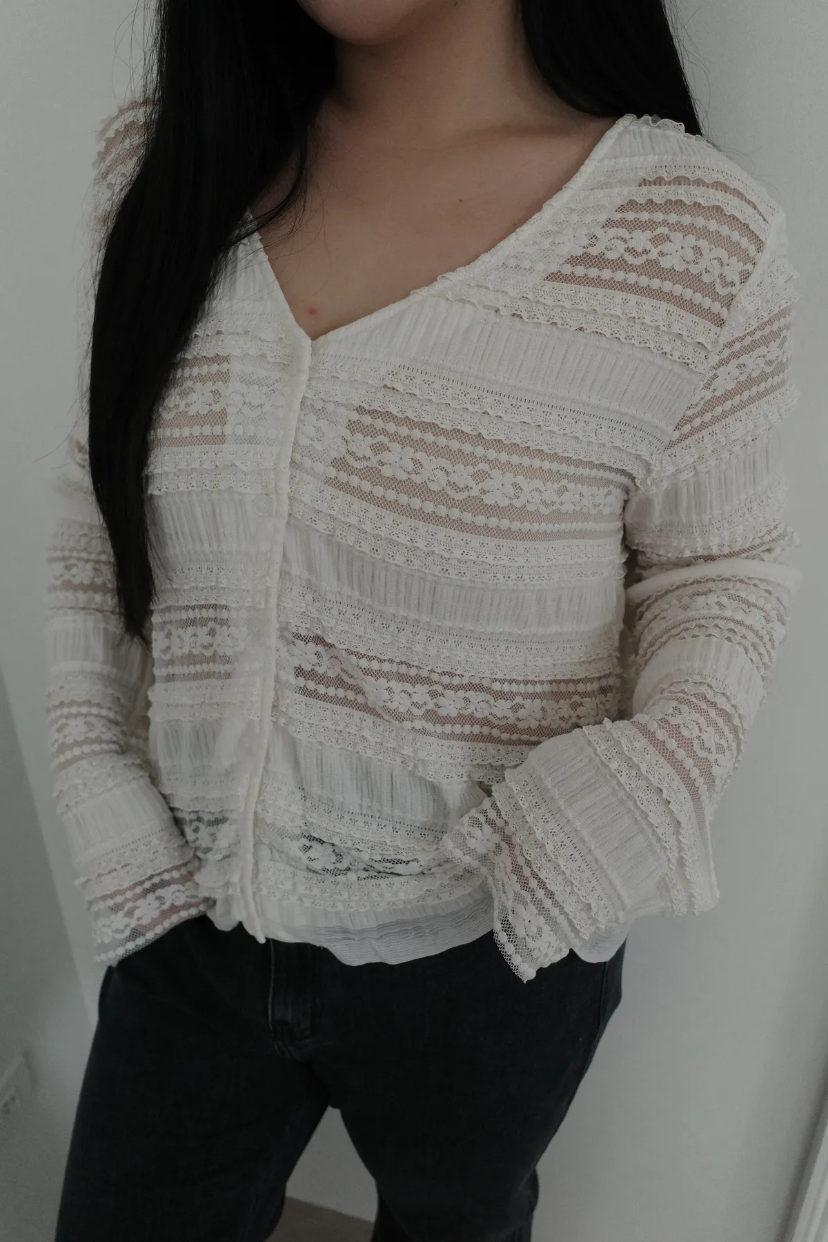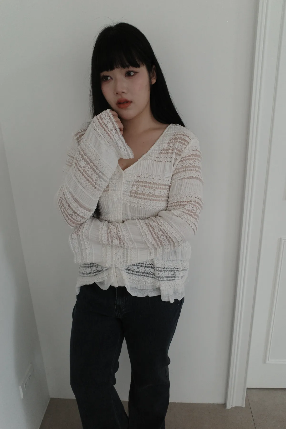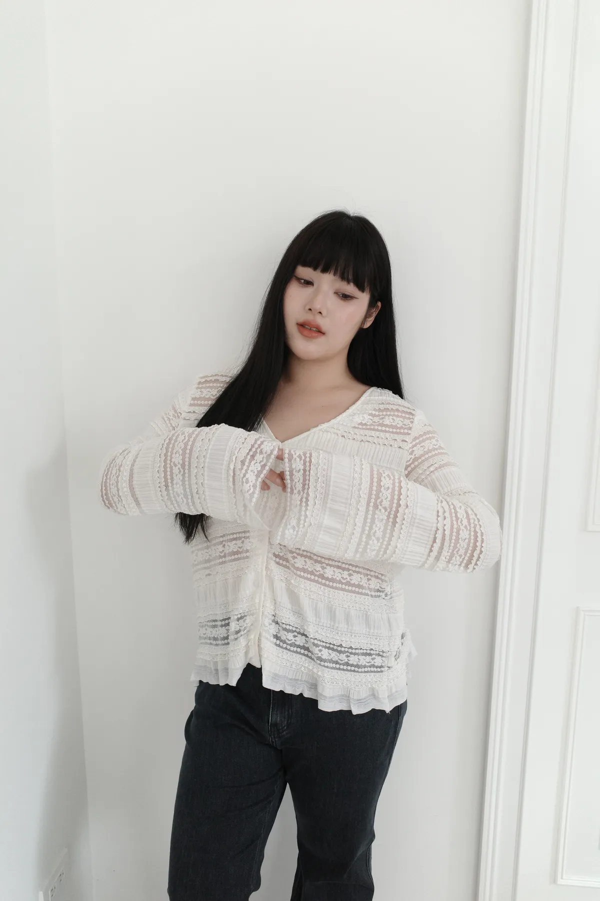 三月24 優雅蕾絲薄款上衣 (2colors)