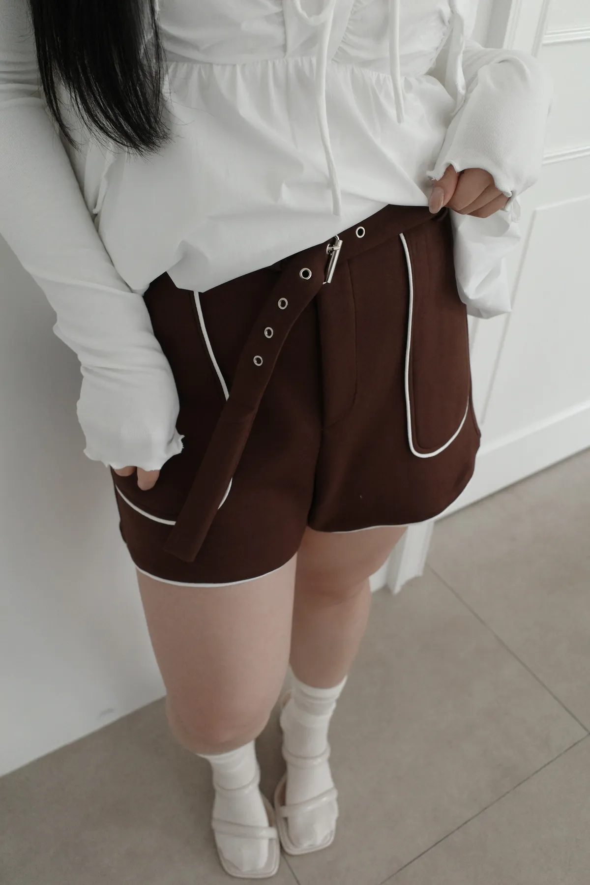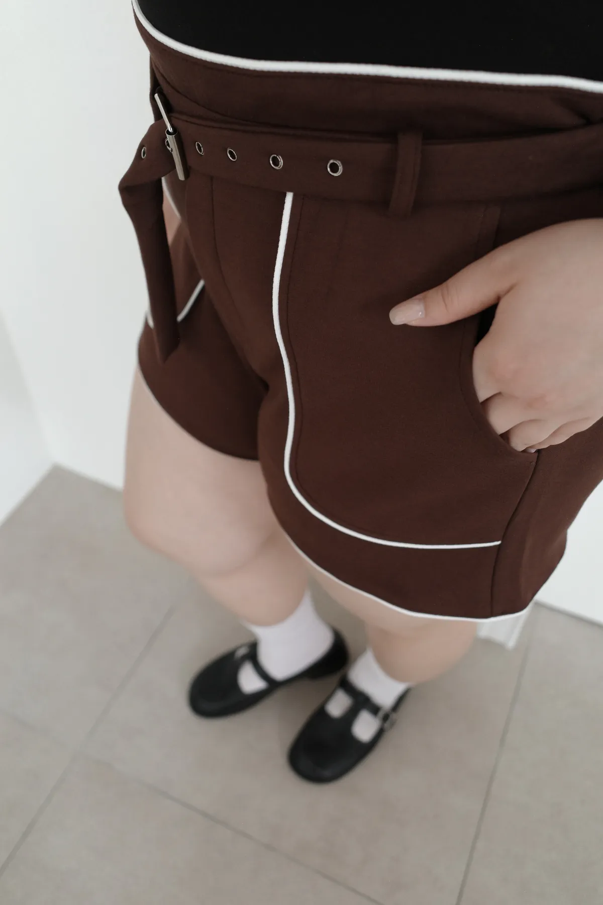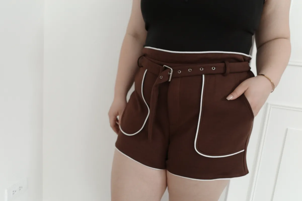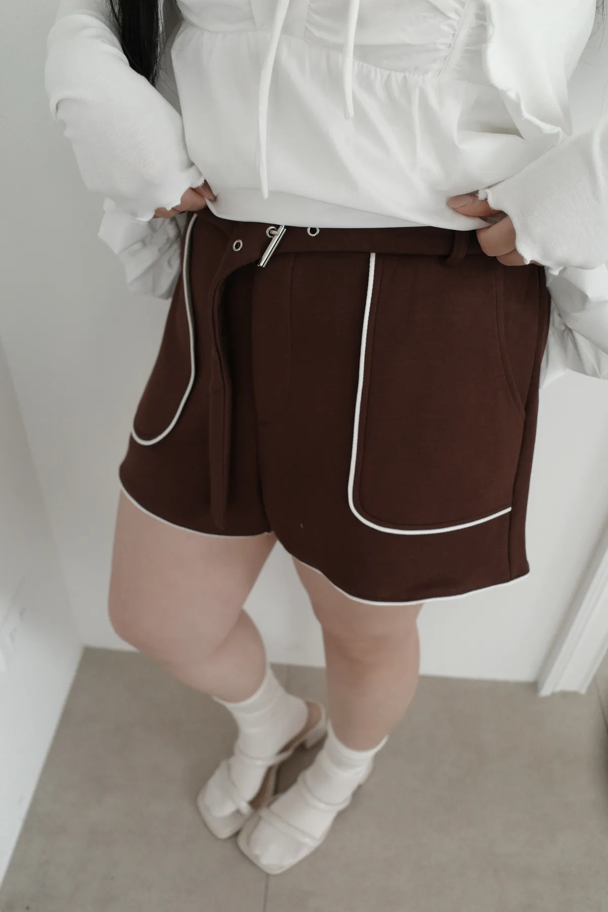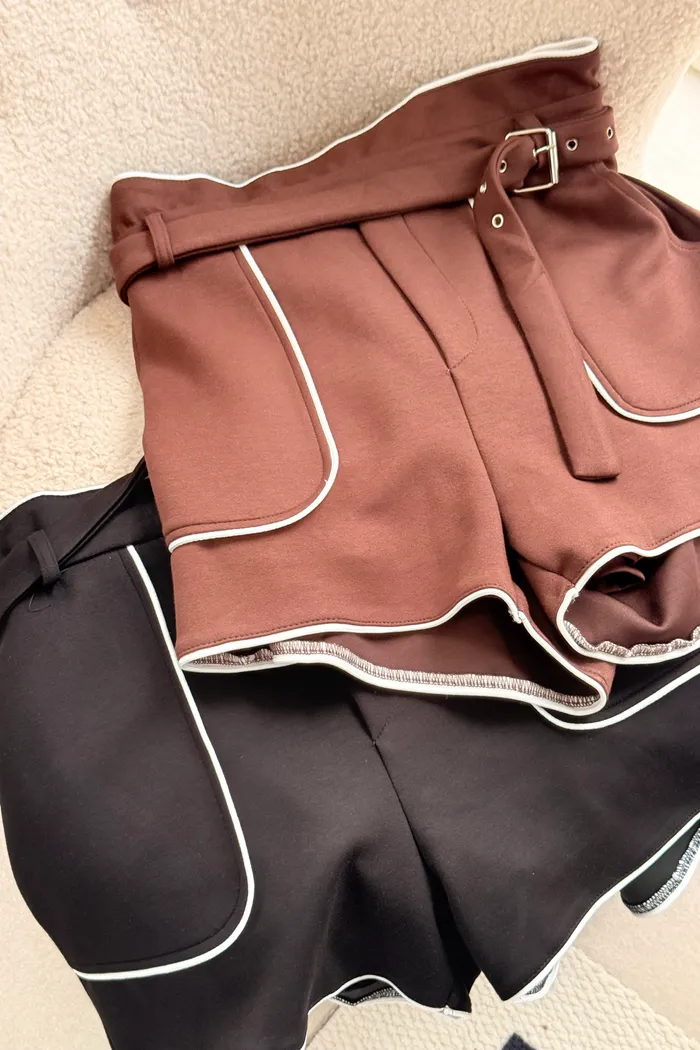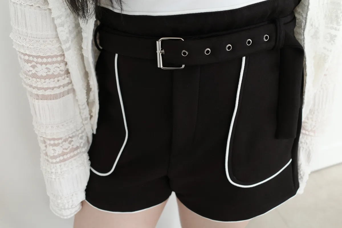三月28 太空棉滾邊短褲 附腰帶 (2colors)