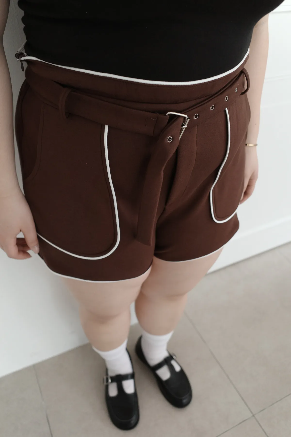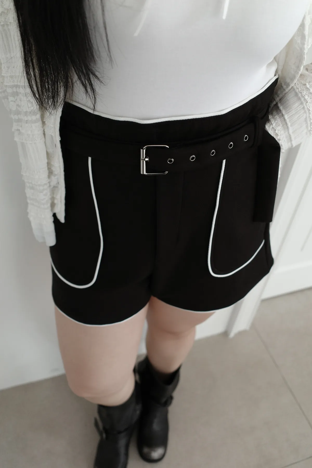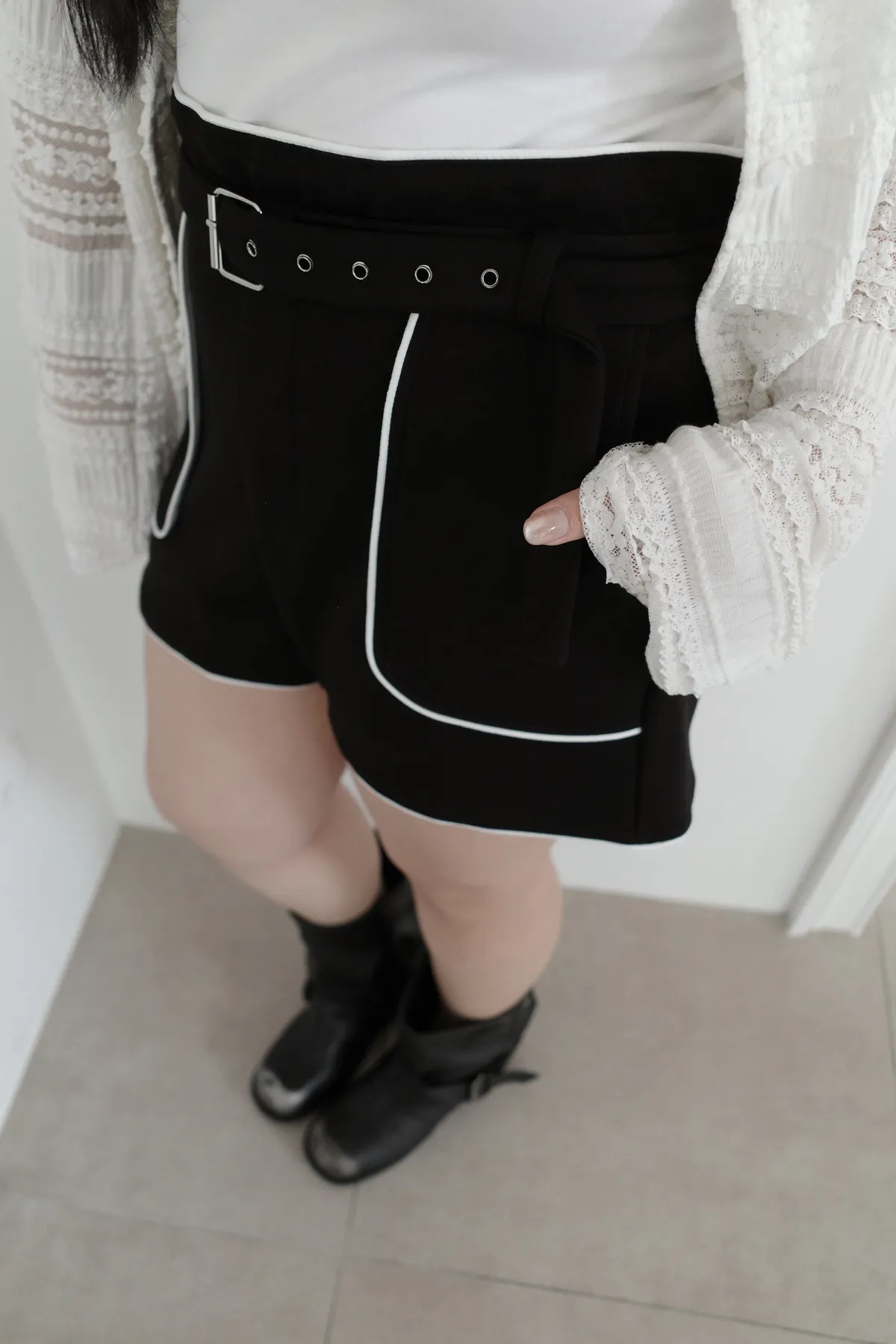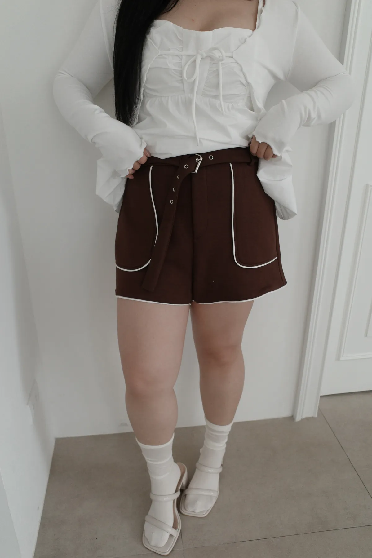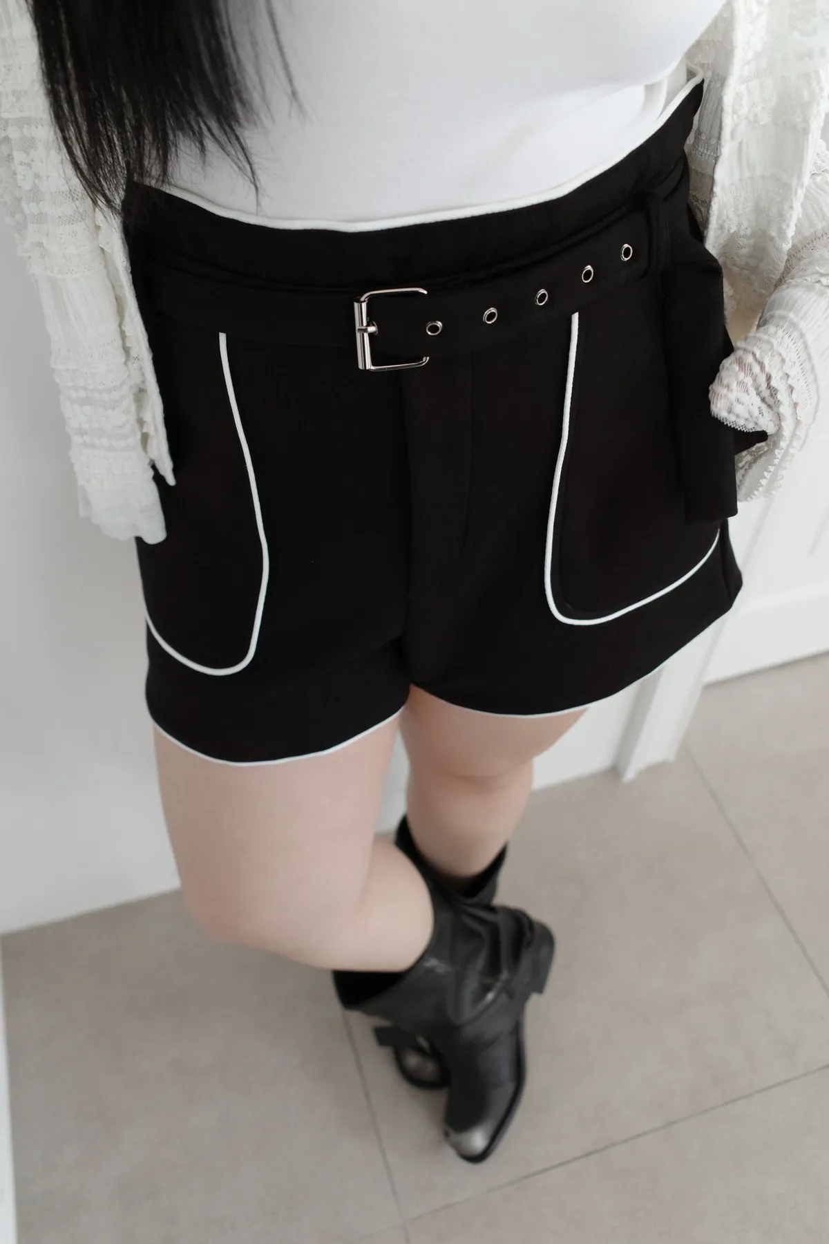 三月28 太空棉滾邊短褲 附腰帶 (2colors)