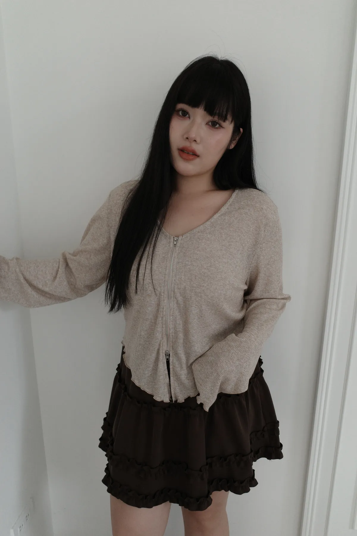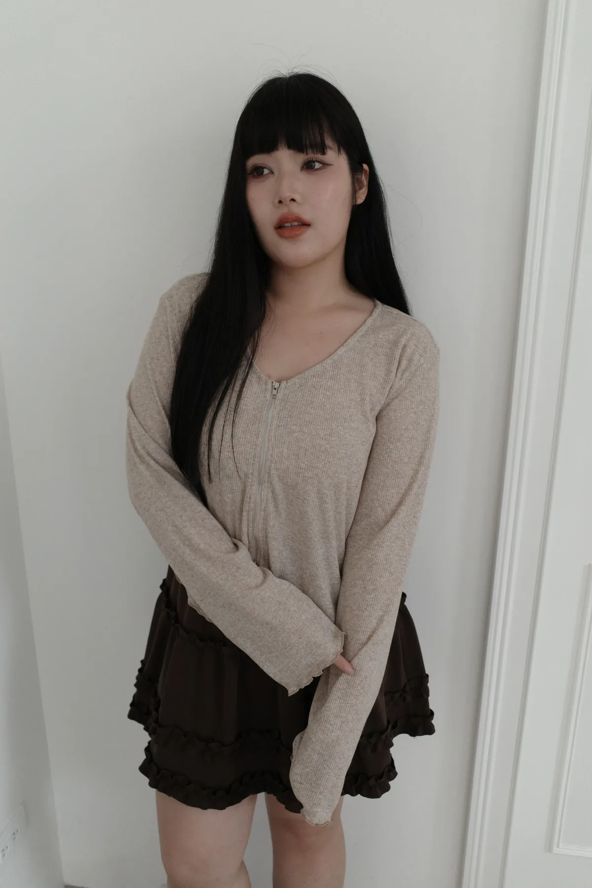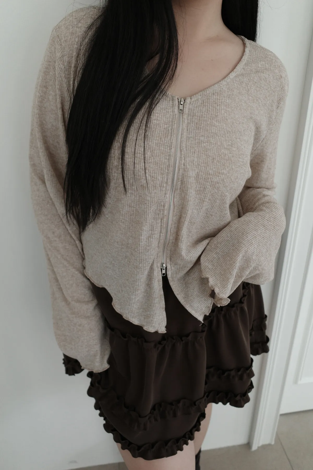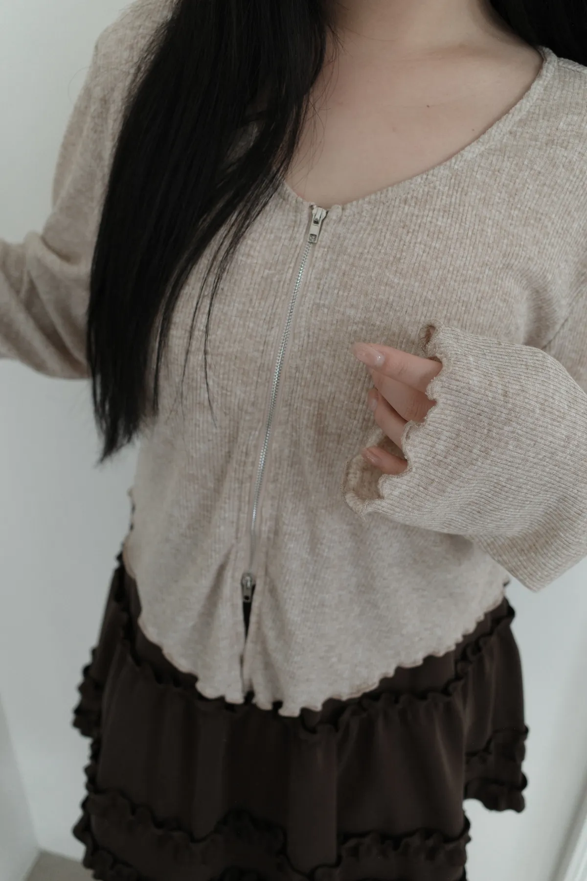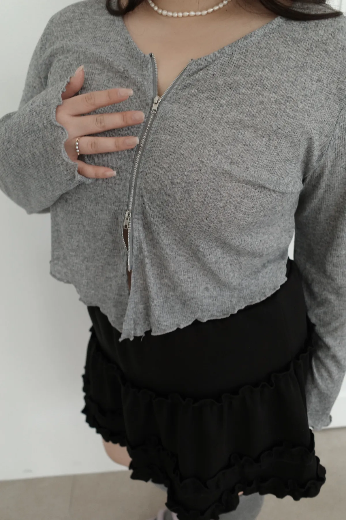 三月36 雙拉鏈 捲捲邊上衣 (2colors)