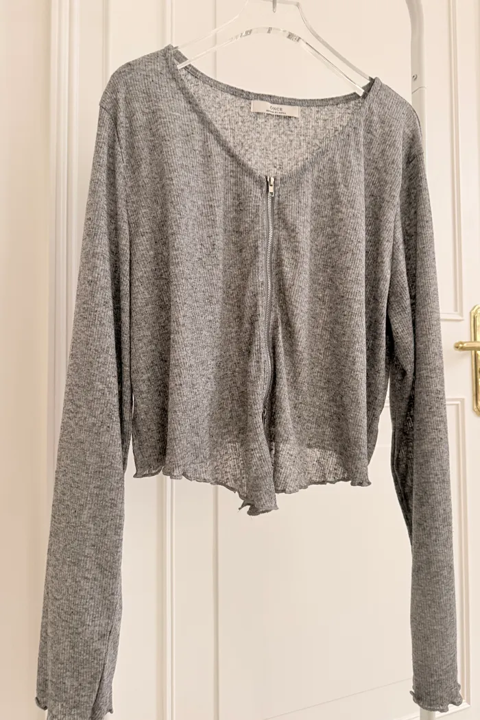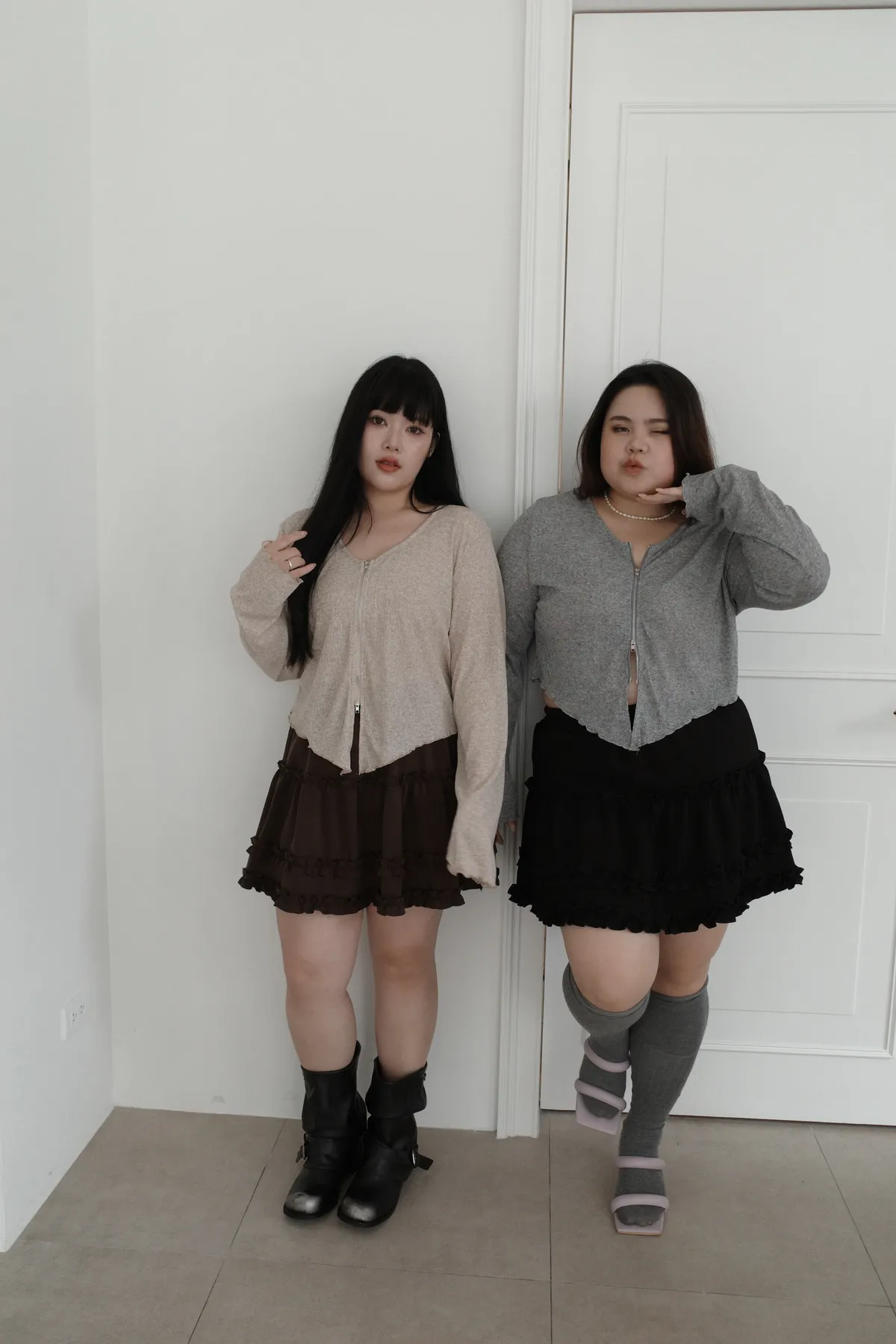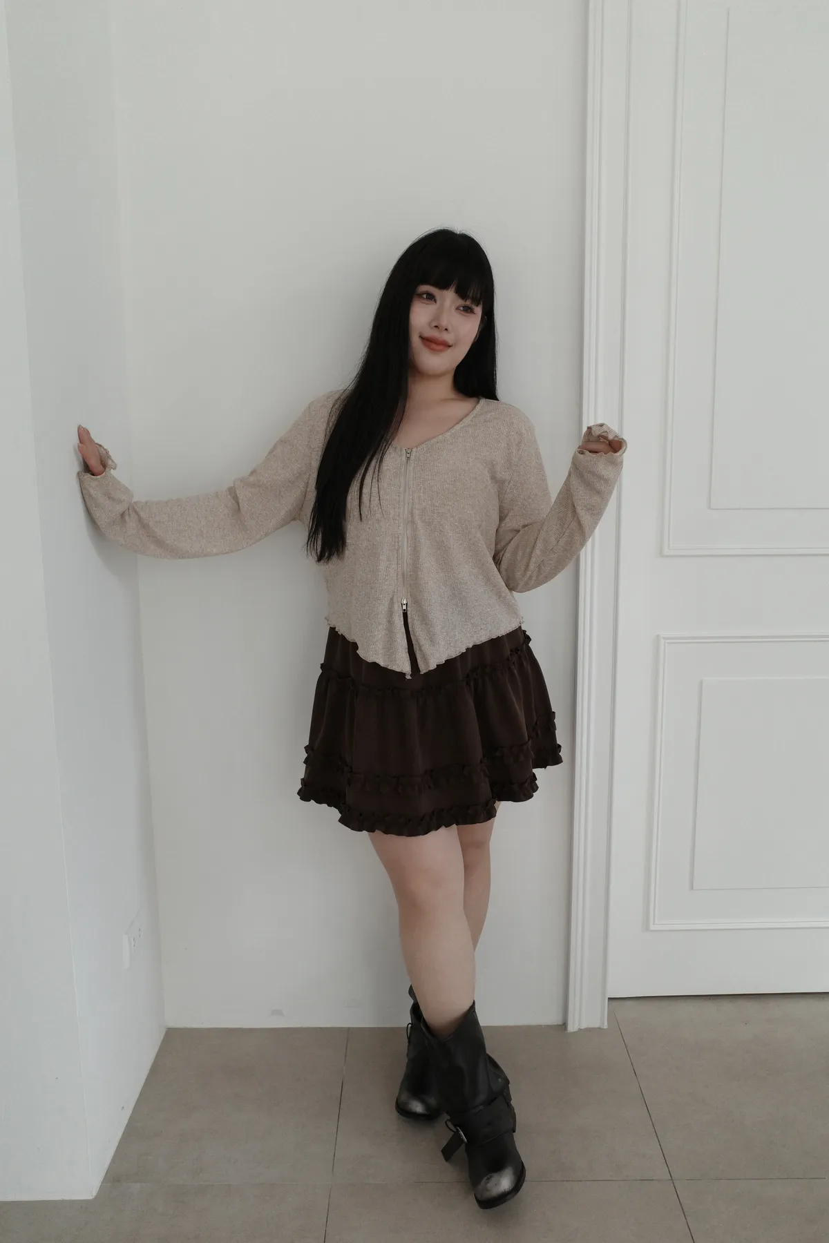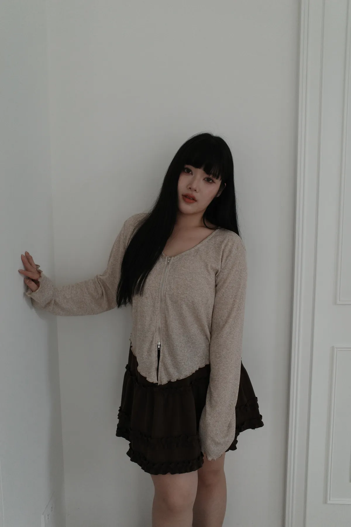 三月36 雙拉鏈 捲捲邊上衣 (2colors)