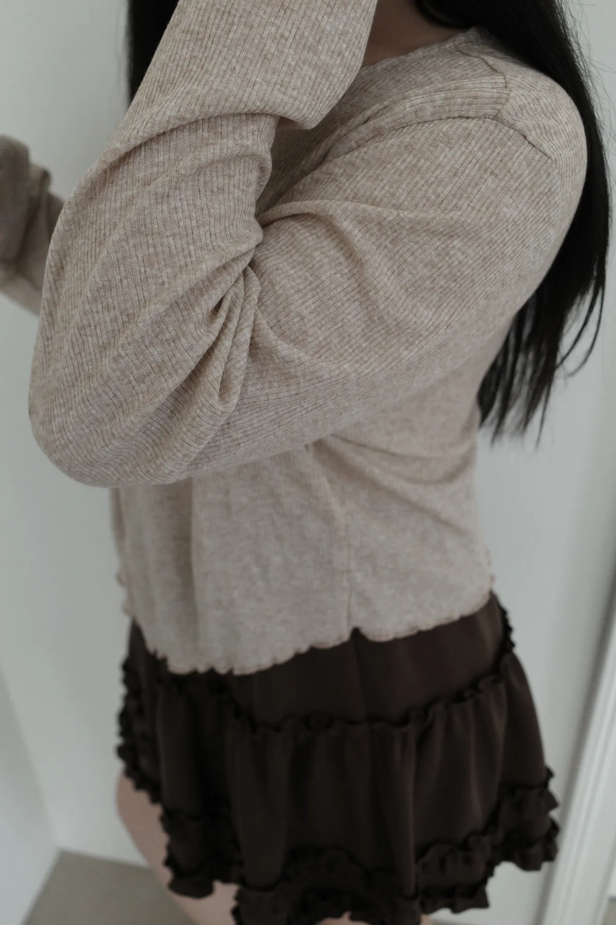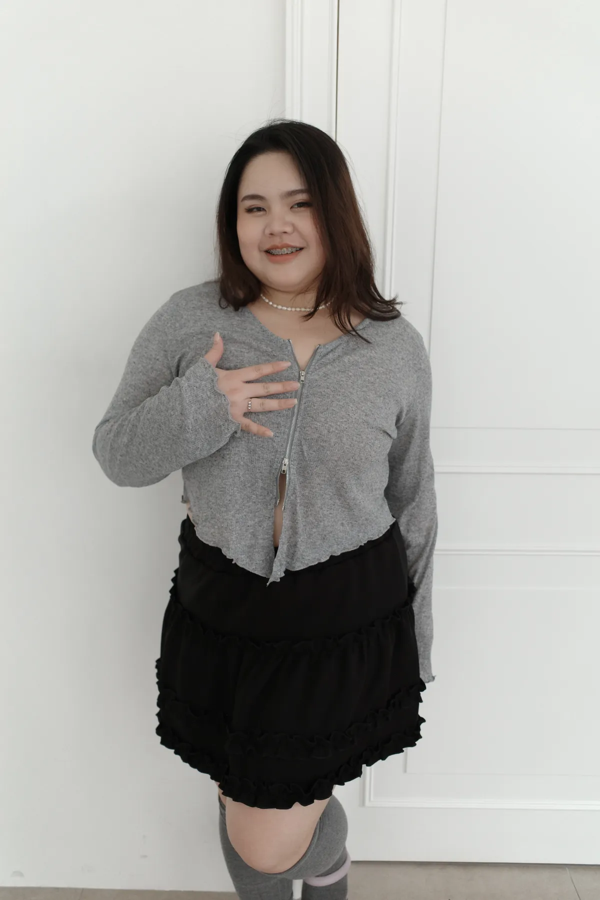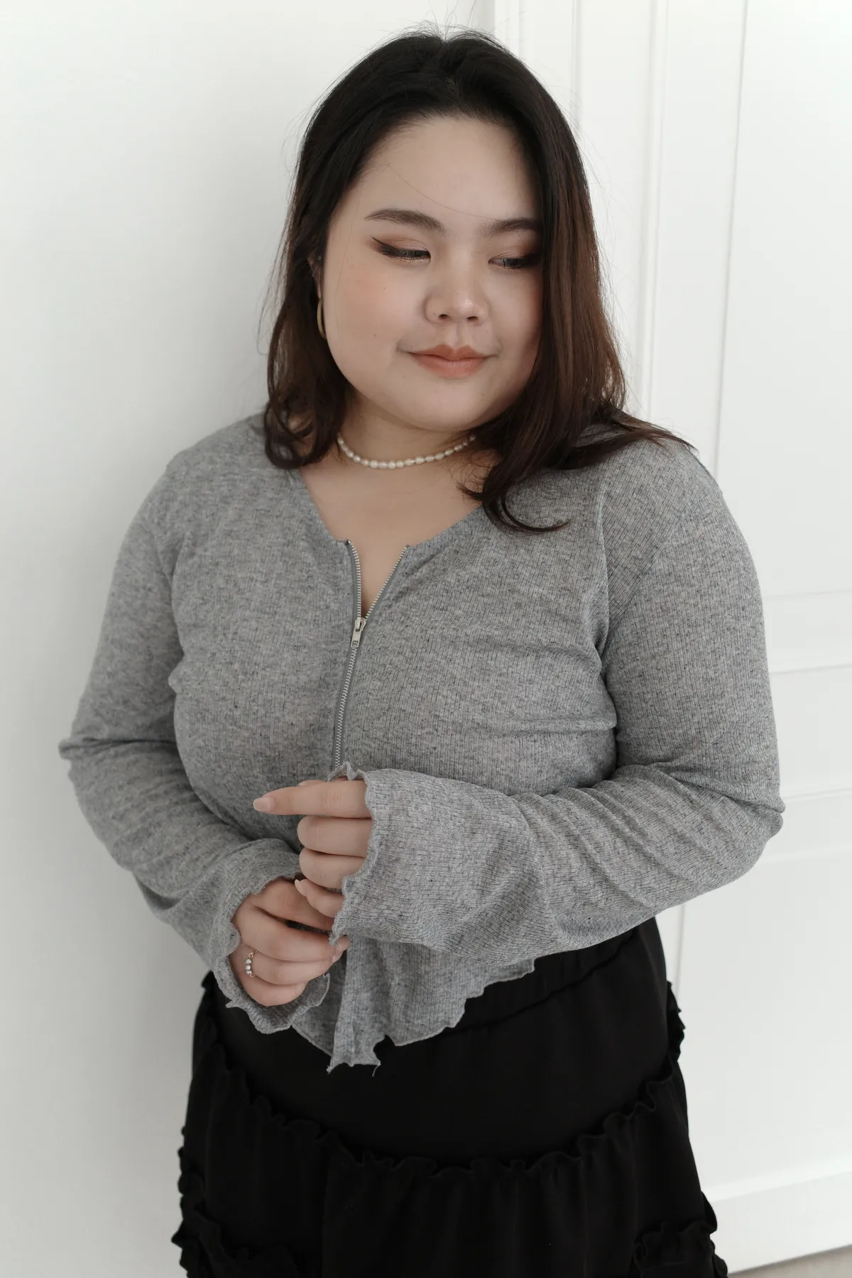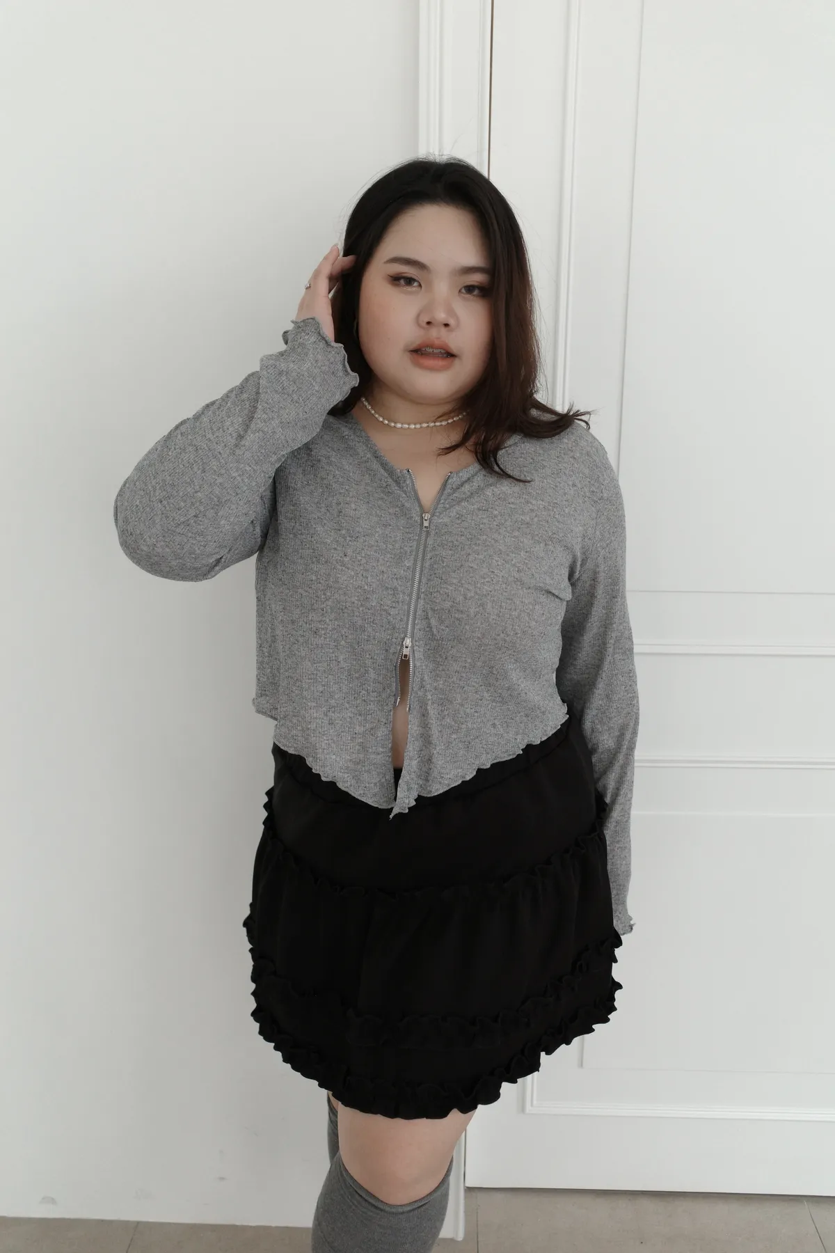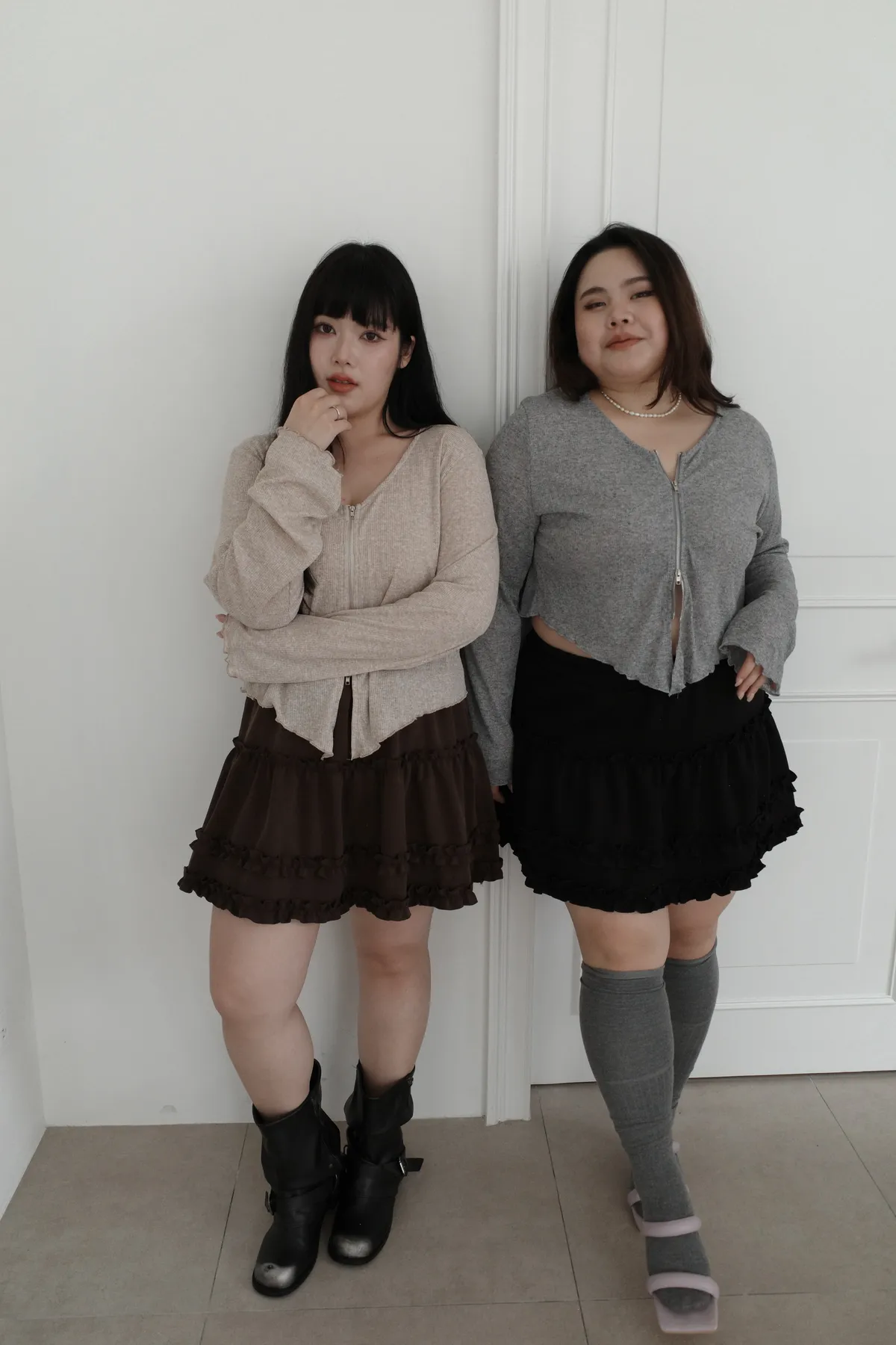 三月36 雙拉鏈 捲捲邊上衣 (2colors)